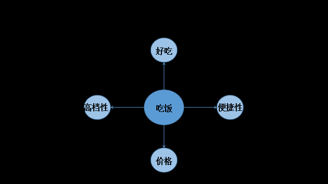 我们以饭馆为例,吃饭是人的刚需,以这个刚需为基础,通过分解它的特点,还可以组合出更多的细分需求。