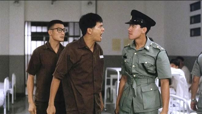 另一个值得关注的现象则是,在《监狱风云》(1987)、《五亿探长雷洛传》(上下两部,1991)、《跛豪》(1991)、《O记三合会档案》(1999)等影片里,殖民香港的港英政府,也被描写为黑白勾结,贪腐严重。其中,英方往往扮演了警界里的高层人物,本土港人扮演的中层干部,也只能看“鬼佬”的脸色行事。一旦东窗事发,英方高层往往找一个替罪羊顶罪,自己则撇得一干二净。黑帮犯罪片里频繁出现的此类描写,说明港人对于英政府,同样怀有深深的不信任。在《监狱风云》这样的电影里,政府几乎就等同于监狱,它唯一的作用就是禁锢人的自由,对主人公的遭遇冷眼旁观。